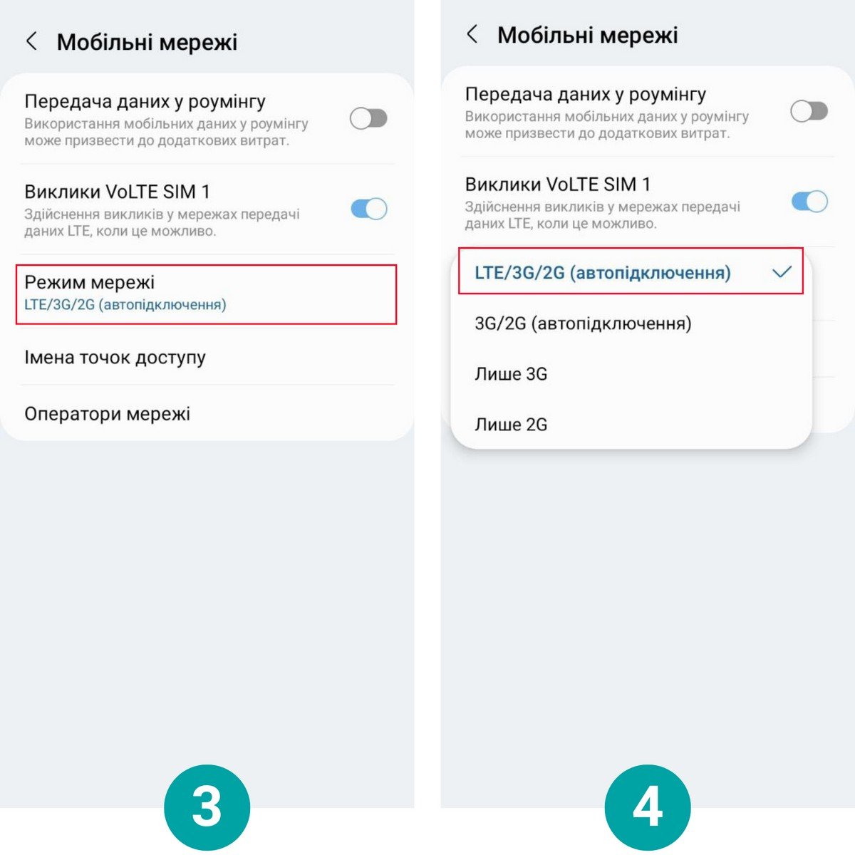 Якщо з’єднання працює повільно, перевірте наступні параметри. По-перше, увімкніть 4G (LTE). Цей режим забезпечує найвищу швидкість мобільних даних. На старих моделях потрібно вручну обрати LTE у налаштуваннях.