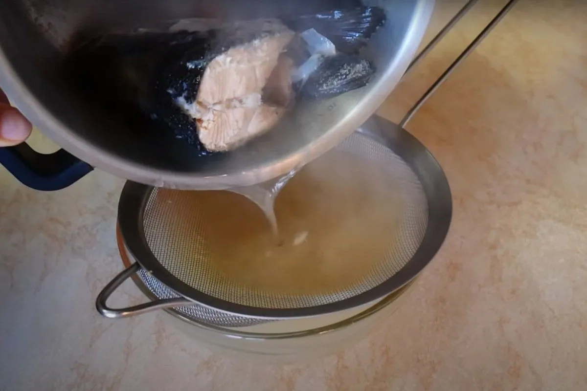 Потрібно приготувати ароматний рибний бульйон з додаванням спецій – лаврового листя, духмяного перцю та ін. Після приготування бульйон ретельно проціджують на ситі.