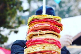 Вежу з млинців – Палачінтауер, – збудували в Мукачеві сьогодні, 17 лютого. Її зводили та випікали всі учасники фесту.