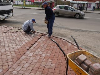 Тротуар працівники фірми-підрядника виклали кольоровою плиткою. Облаштували також покриття на встановленій тут «розумній» автобусній зупинці.