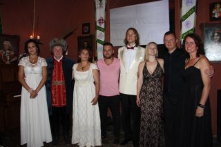 Дійство продовжилось екскурсією зі смолоскипами по вечірньому замку з господарем Йосифом Бартош. Знайомства, обговорення, обмін думками і враженнями – все це відбувалось за келихом шампанського під чарівну гру маестро Шоренкова.