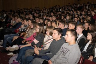 Розпочали зустріч із вітального слова ректора УжНУ Володимира Смоланки, який зазначив: «Торік ми вперше провели зустріч із учнями ужгородських шкіл і вирішили зробити це традицією. Тому радий вітати, я сподіваюся, наших майбутніх студентів, а також присутніх тут партнерів з Ужгородської міської ради, з якими в нас хороша співпраця. Навчання в УжНУ дає змогу не тільки здобувати нові знання, а й подорожувати, знайомитися з цікавими людьми, отримувати нових друзів».