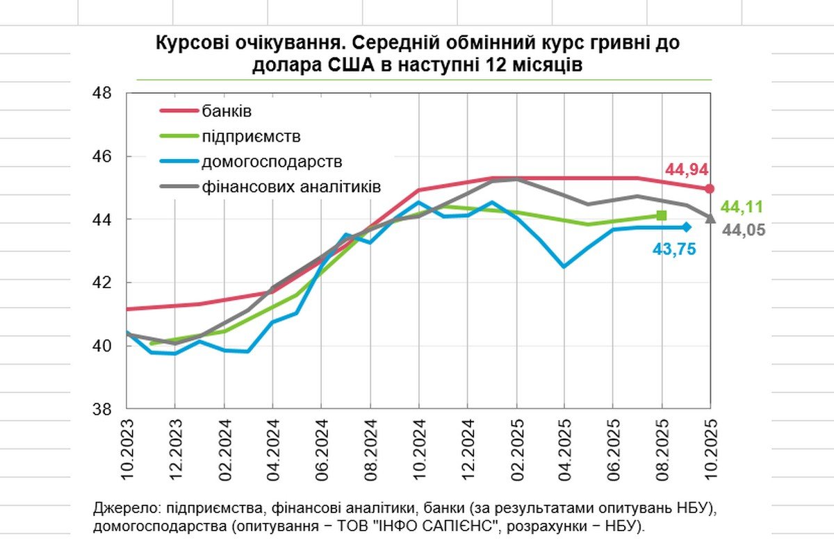 Стосовно населення, то оновлених даних наразі немає, але у вересні дворогосподарства очікували курс 43,75 грн/дол.
