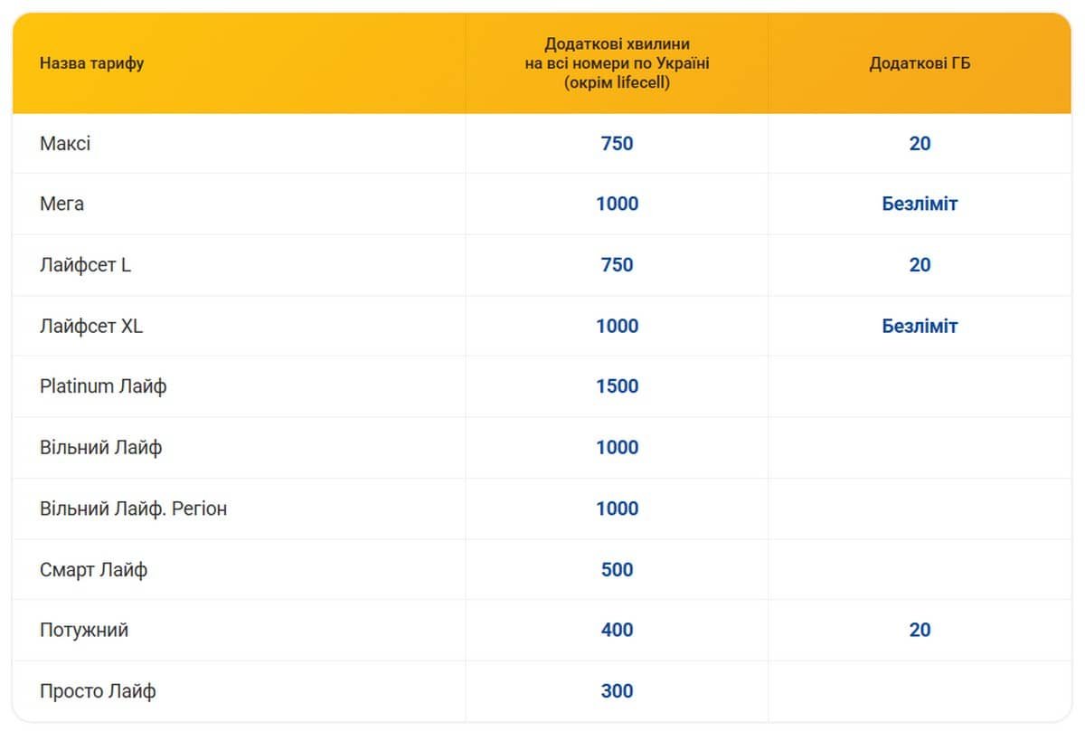 - за своєчасну оплату можна отримати додаткові хвилини та більший обсяг мобільного інтернету (плюс 20 ГБ або безліміт).