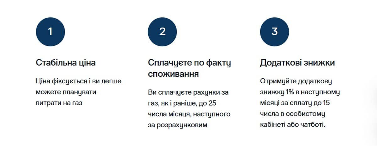 РекламаЗгідно з умовами тарифного плану «Фіксований», вартість кожного кубометра блакитного палива становить 7,96 грн. Водночас діє додаткова знижка в розмірі 1% при умові сплати рахунку до 15 числа через чат-боти або в особистому кабінеті споживача.