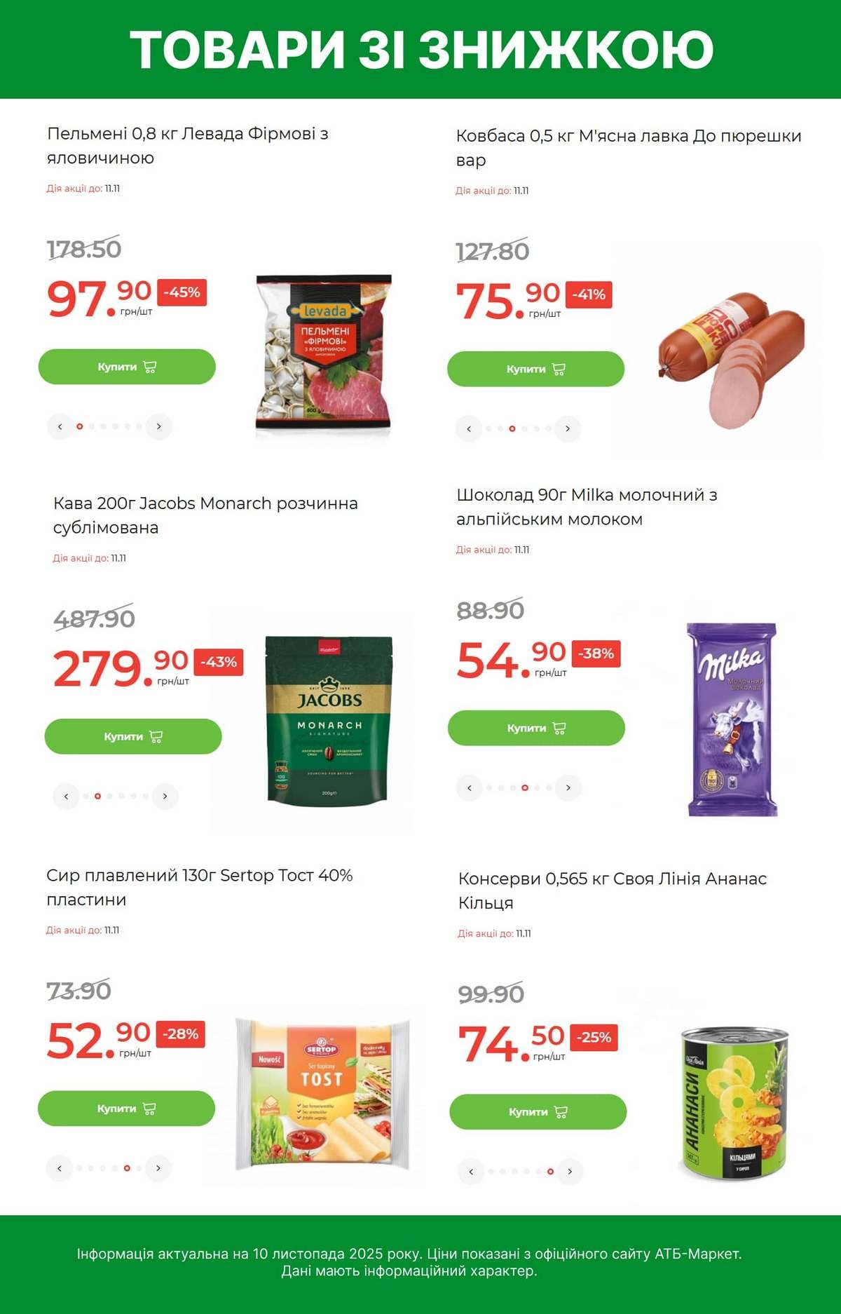 Є ще кілька товарів, знижки на які становлять в межах 25%. Загалом весь список продуктів доступний на сайті АТБ. Нижче подаємо скріншоти тих продуктів, які ще 2 дні продаватимуть дешевше.