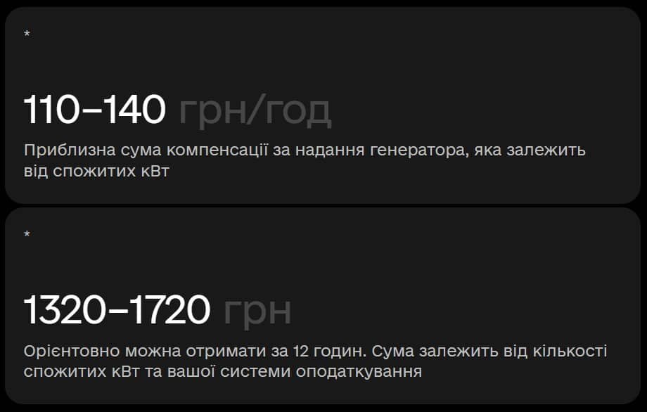 - до 140 гривень за годину, але заробіток залежить від кількості спожитих кіловатів та сплачених податків,