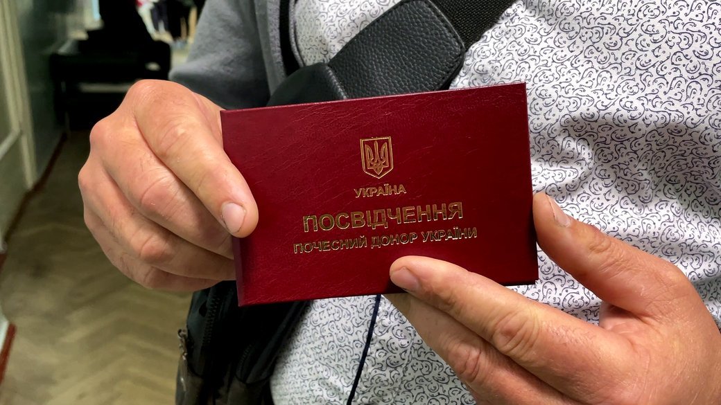 Його можна отримати, якщо на безоплатній основі здати сорок цільних доз крові або шістдесят разових доз плазми крові. На основі цього видається спеціальне посвідчення.