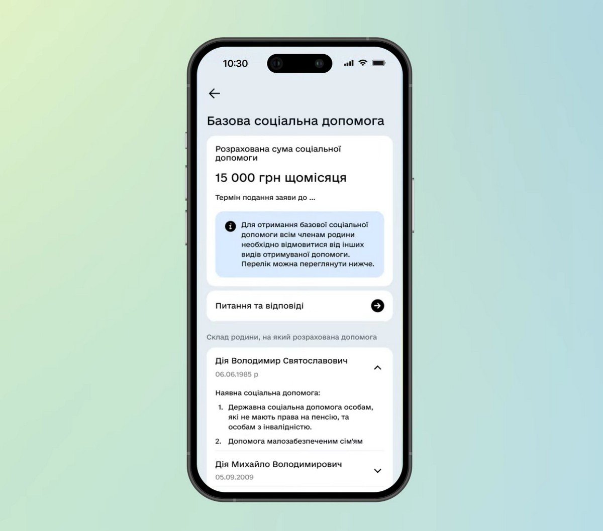 Базову соціальну допомогу називають новою, оскільки вона призначається лише кілька місяців. Її розробили для того, щоб замінити кілька дрібних нарахувань однією більшою виплатою. Ті українці, які встановили Дію на телефоні, мають спочатку оновити застосунок до найновішої версії. Далі потрібно здійснити наступні кроки: