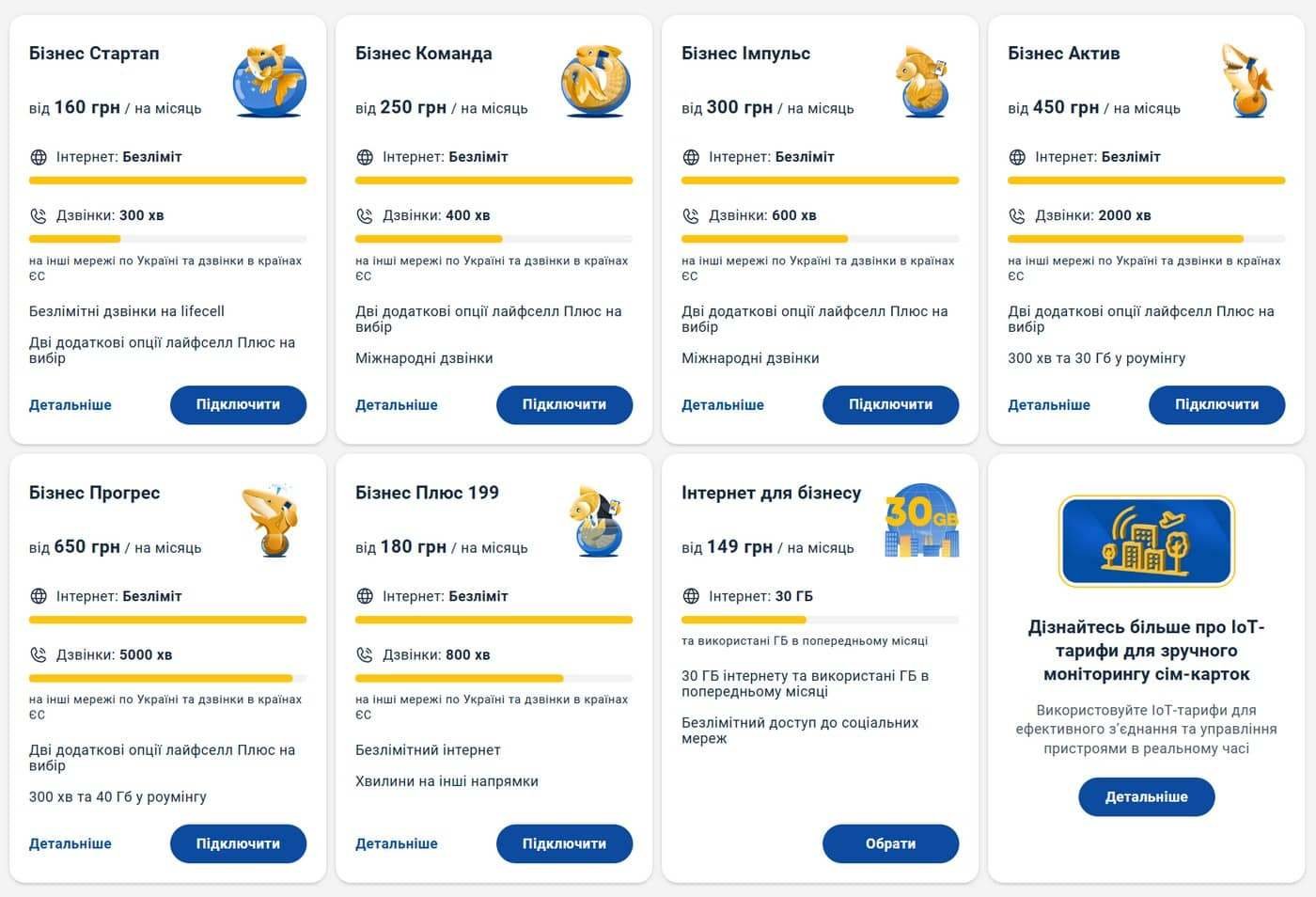 На сайті Lifecell наразі зазначені такі бізнес-тарифи, доступні до підключення: