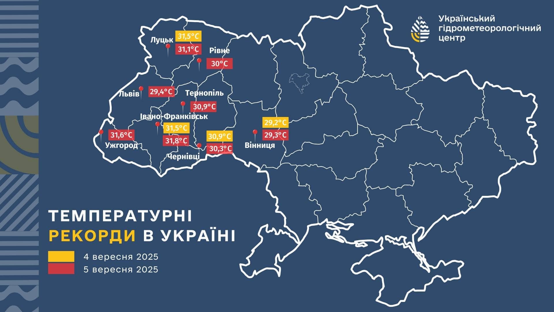 До речі, Український гідрометеорологічний центр повідомив про ряд температурних рекордів 5 вересня. В тому числі в Закарпатській області.