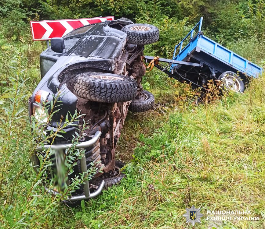 Водій автомобіля Mitsubishi Pajero не вибрав безпечної швидкості руху та не врахував стан дорожнього покриття. Внаслідок цього чоловік не впорався із керуванням та виїхав за межі проїзної частини дороги, де автомобіль перекинувся.
