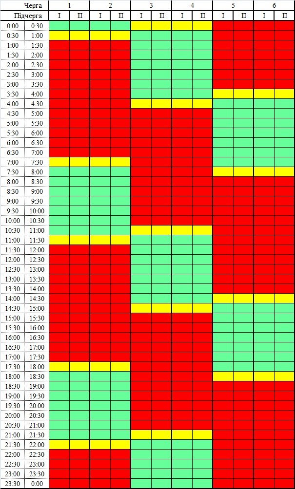 РекламаУ рамках графіка застосовуватимуться одразу чотири черги відключень. Принцип такий: три години зі світлом та шість годин без електроенергії. Окремо передбачено час на перепідключення, у цей період електропостачання може вмикатися та вимикатися.