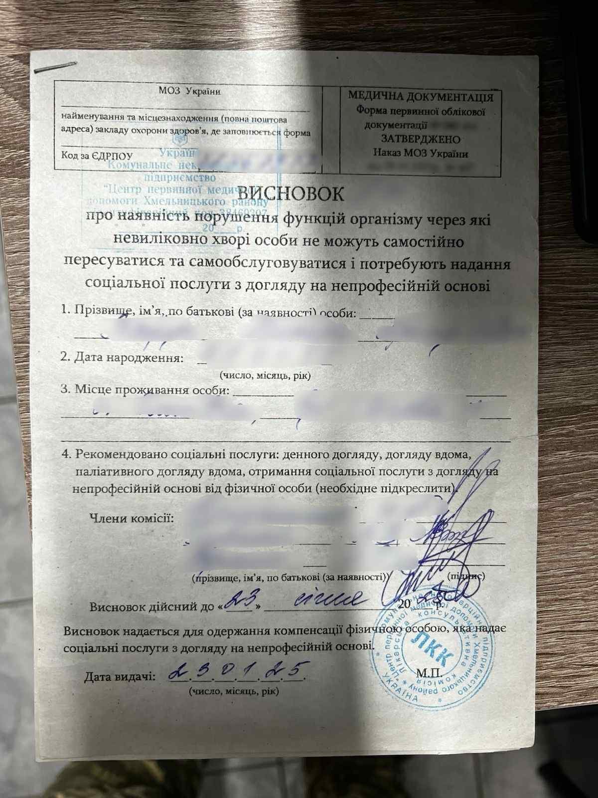 У другому випадку 46-річний хмельничанин надав на прикордонний контроль медичний висновок про те, що його батько, з яким він прямував до Румунії, не може самостійно пересуватися і потребує догляду.
