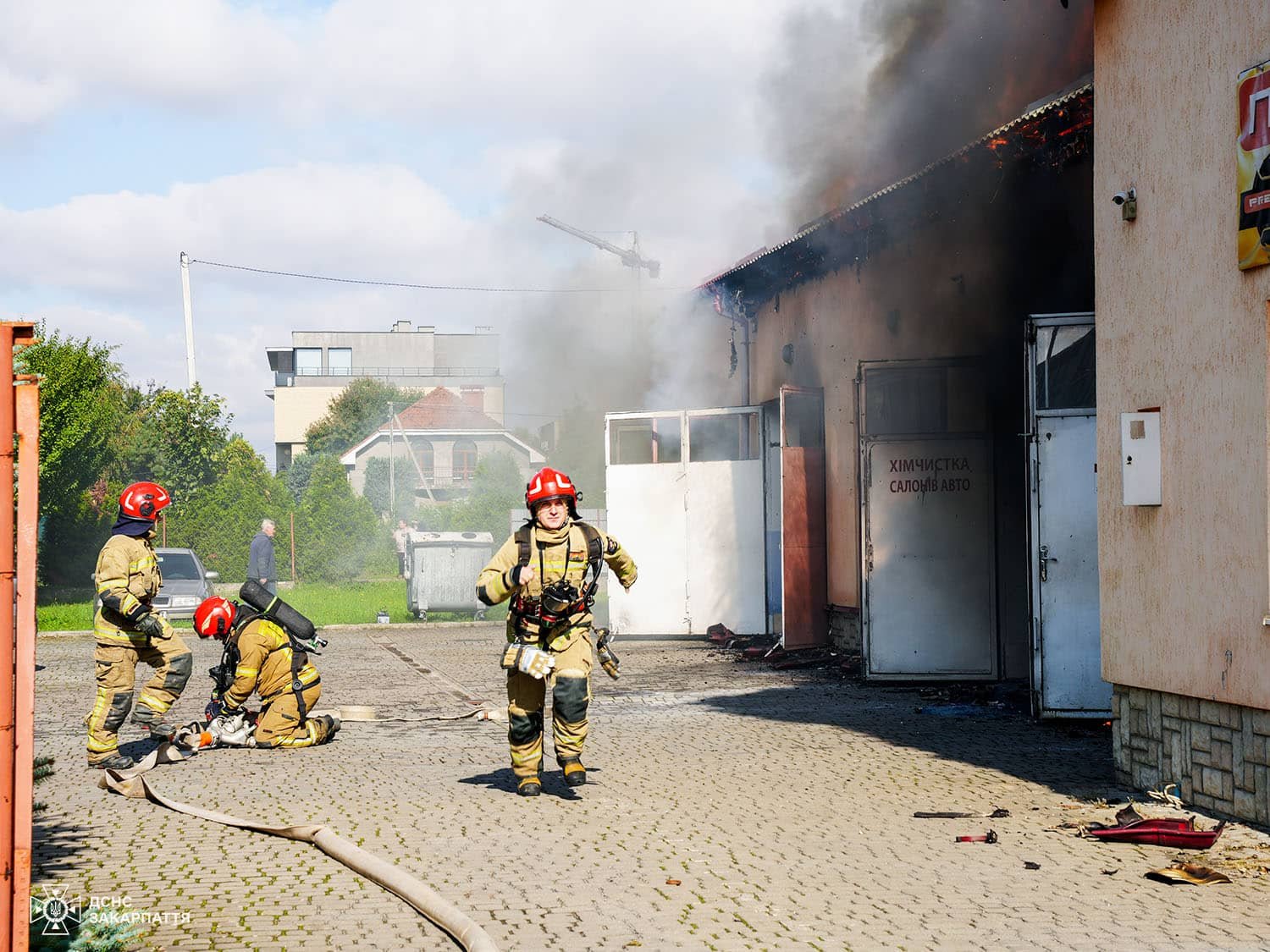 Разом із вогнеборцями на місці працювали поліцейські та представники Загону швидкого реагування Товариства Червоного Хреста України. Завдяки оперативним діям вдалося врятувати частину майна та автомобілі, що перебували всередині приміщення.