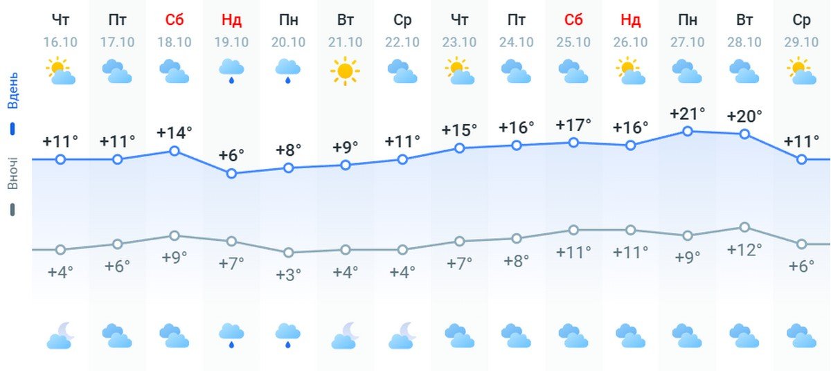 - найтепліше буде в проміжку від 24 до 30 жовтня.