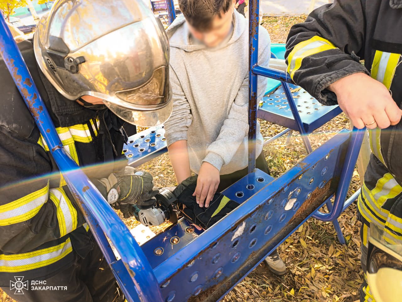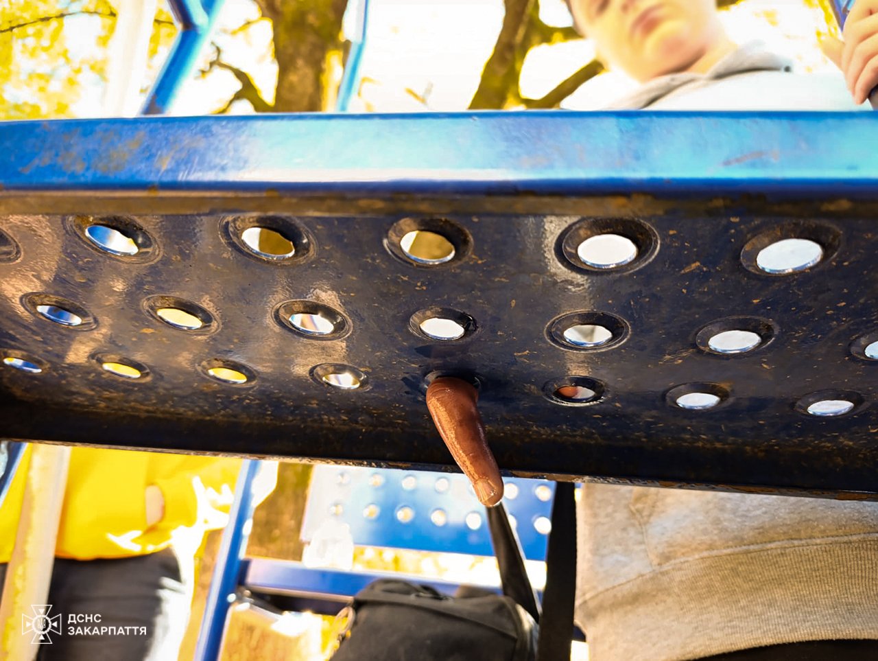 «Тому батьки викликали рятувальників та медиків. Фахівці ДСНС з Іршави за допомогою „болгарки“ відрізали частину гойдалки», — розповіли в ГУ ДСНС України в Закарпатській області.