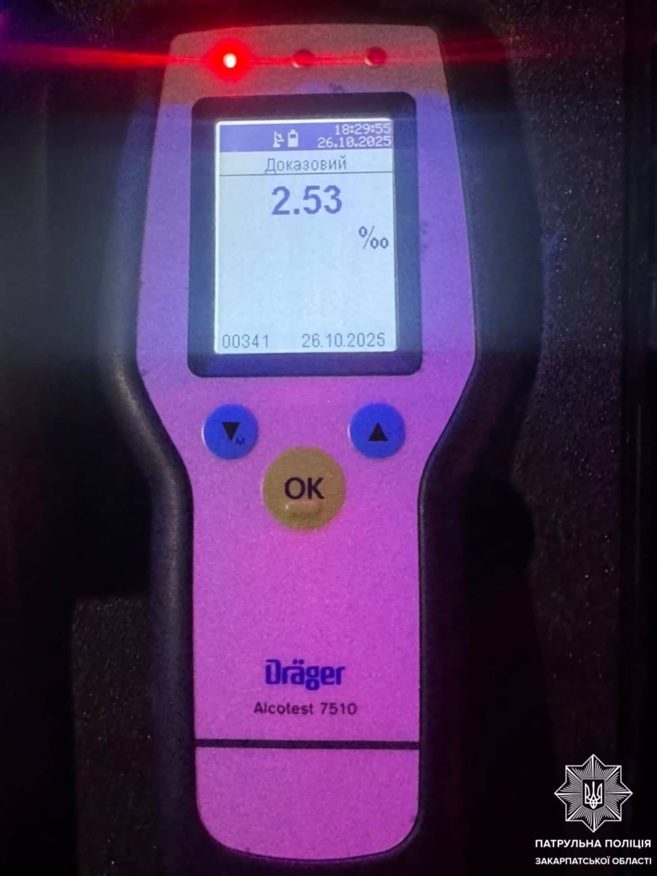 ВІДЕО ДНЯПід час спілкування з винуватцем аварії поліцейські помітили ознаки алкогольного сп’яніння. Огляд за допомогою драгера показав 2,53 проміле алкоголю в крові водія, — інформує Патрульна поліція Закарпатської області.