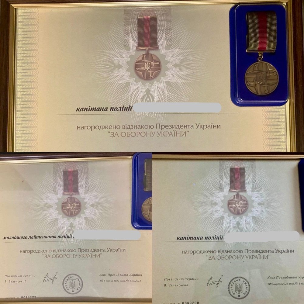 Йдеться про трьох поліцейських із Мукачівщини. За заслуги перед Батьківщиною їх нагороджено відзнакою Президента України «За оборону України».