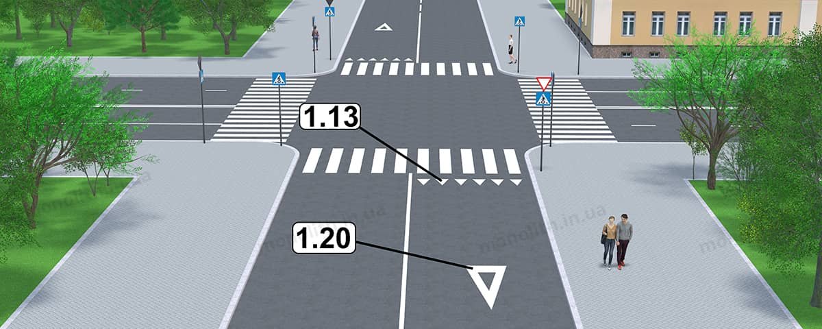 ВІДЕО ДНЯОдне з питань, яке винесено на іспит, — що означає дорожня розмітка у вигляді трикутника на смузі руху? Йдеться про розмітку з офіційною кодифікацією 1.20, яку наносять перед розміткою 1.13.