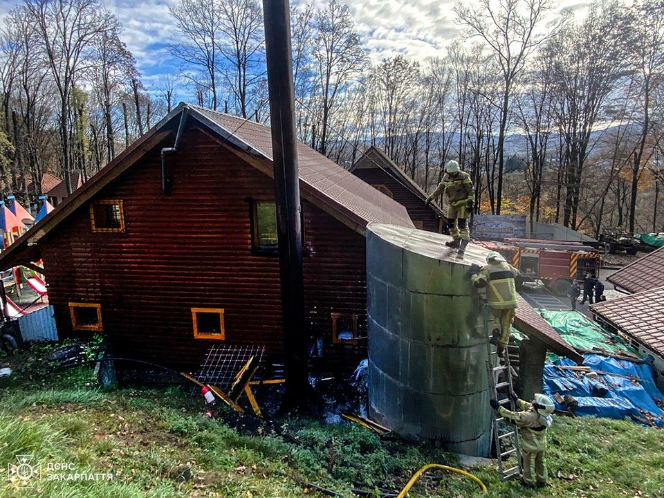 Виявилось, що вогонь спалахнув у приміщенні котельні. Там зайнялася дерев’яна обшивка стіни. Коли працівники комплексу помітили дим, то викликали рятувальників і почали гасити пожежу підручними засобами.