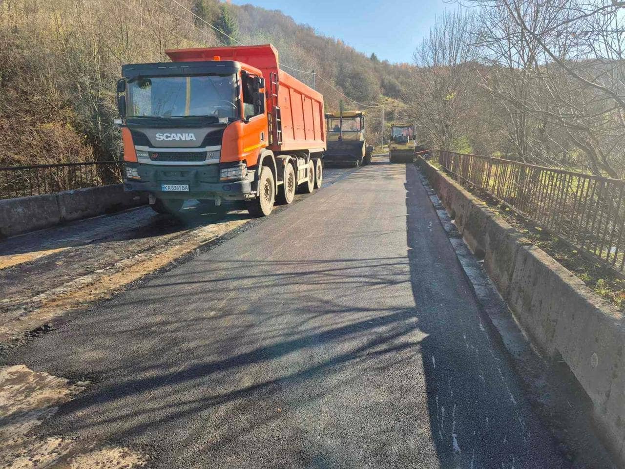 ВІДЕО ДНЯОсобливу увагу приділено відновленню мостового переходу через гірський потік. На цій ділянці дорожники укладають новий шар асфальтобетонного покриття, здійснюють його ущільнення за допомогою катків та вирівнюють основу.