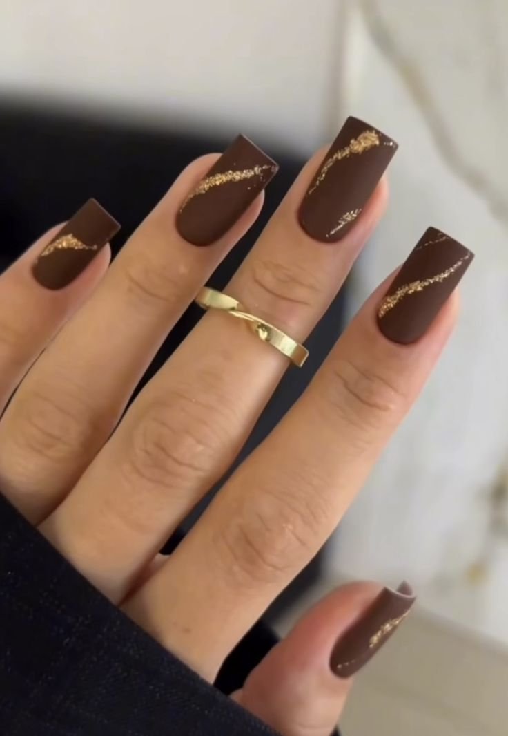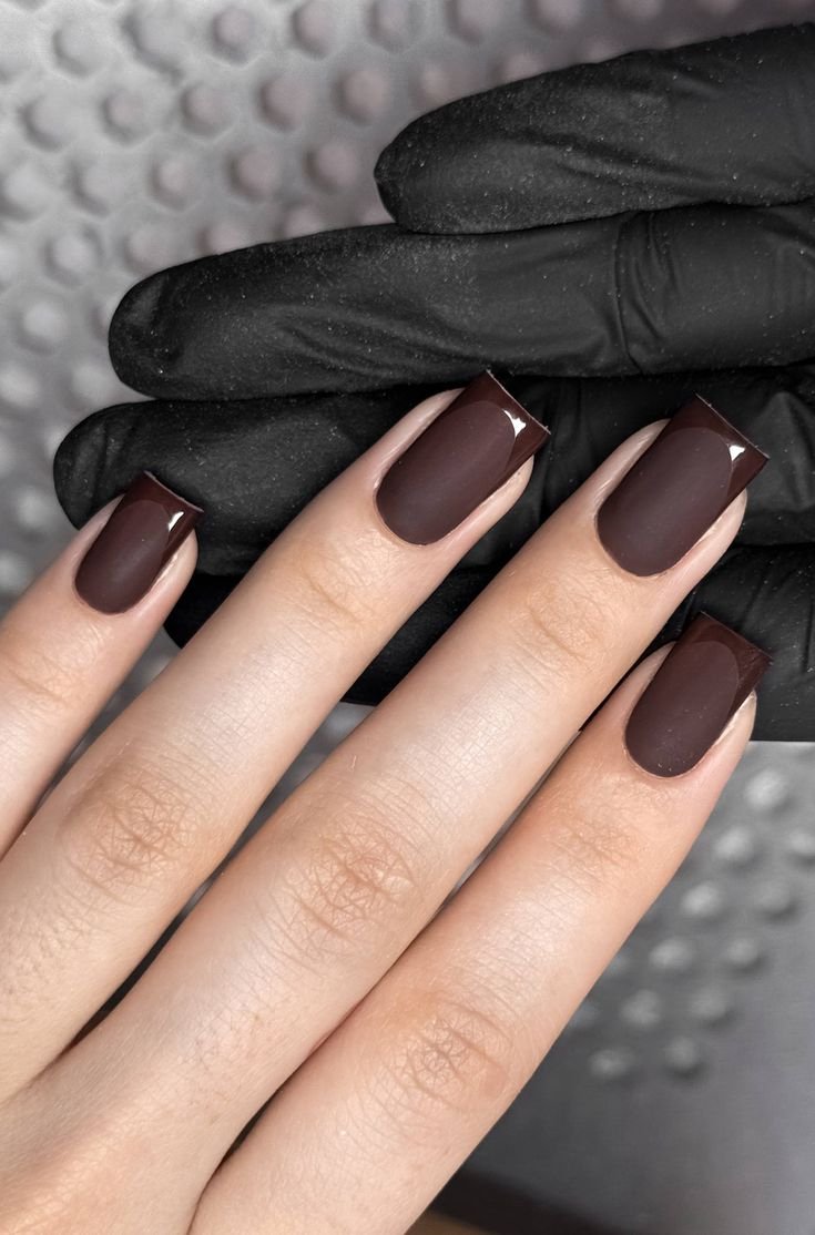 Взимку 2025/2026 найбільшим трендом буде так званий шоколадний «замшевий» манікюр. Це глибокий коричневий відтінок, який має оксамитовий або ж матовий ефект і створює враження м’якості, яка нагадує замшу. Такий варіант поєднуватиме вишуканість, затишок і тепло. Тому варто придивитися до цього варіанту, виглядає він дуже дорого. Попри те, що блиску такий дизайн не має, виглядає він розкішно завдяки імітації текстури.