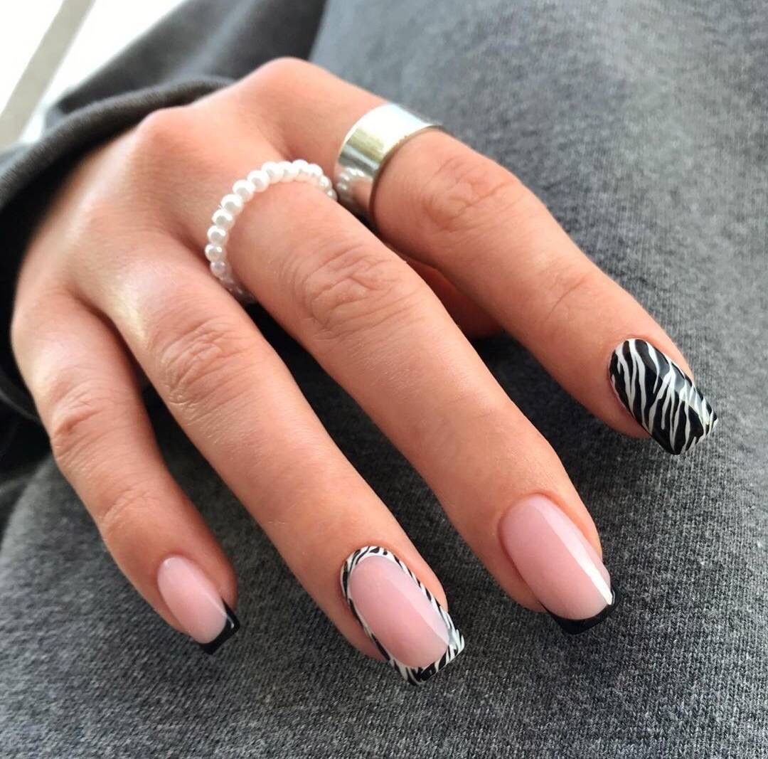 Тваринні принти теж залишаються актуальним варіантом зимового манікюру. Особливо леопардові принти, тигрові смужки, чорно-білі принти зебри. Можна додати і трошки блиску чи контрастних відтінків. Головне, не переборщити. Можна зробити такий принт тільки на одному чи двох нігтях.