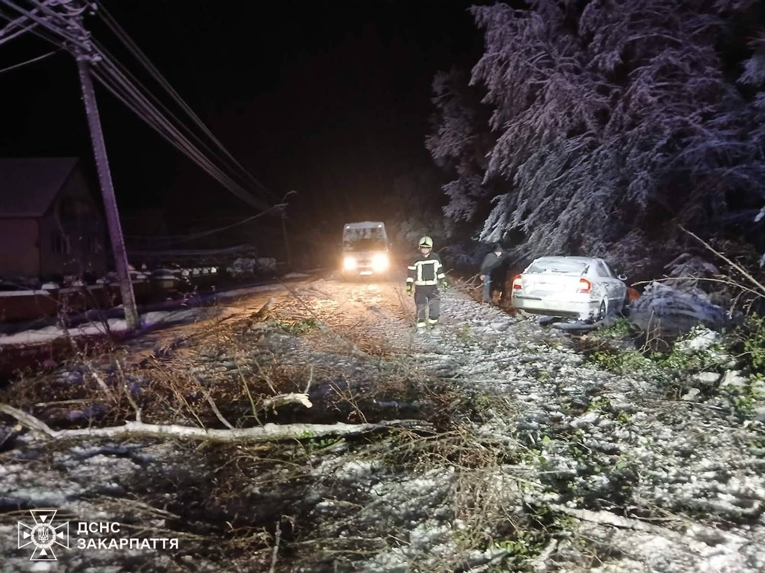 Через складні погодні умови на Закарпатті протягом 7-8 січня станом на 12:00 зафіксовано сім випадків падіння дерев на автошляхи та транспортні засоби.