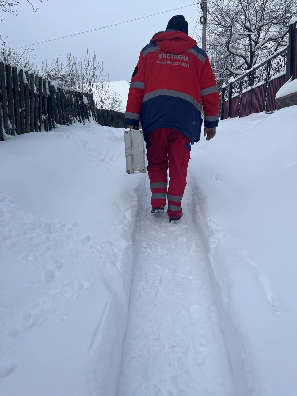 Складні погодні умови не зупинили медиків, які приїхали рятувати жінку поважного віку з підозрою на інсульт.