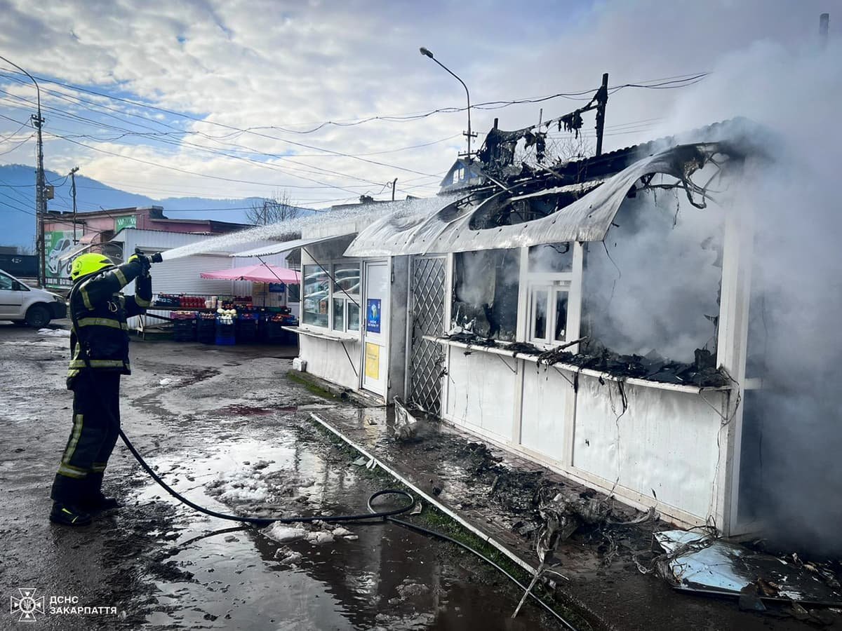 5 лютого о 14:16 до Служби порятунку звернуся чоловік. Він повідомив про загоряння торговельного павільйону на вулиці Івана Франка в місті Хуст.