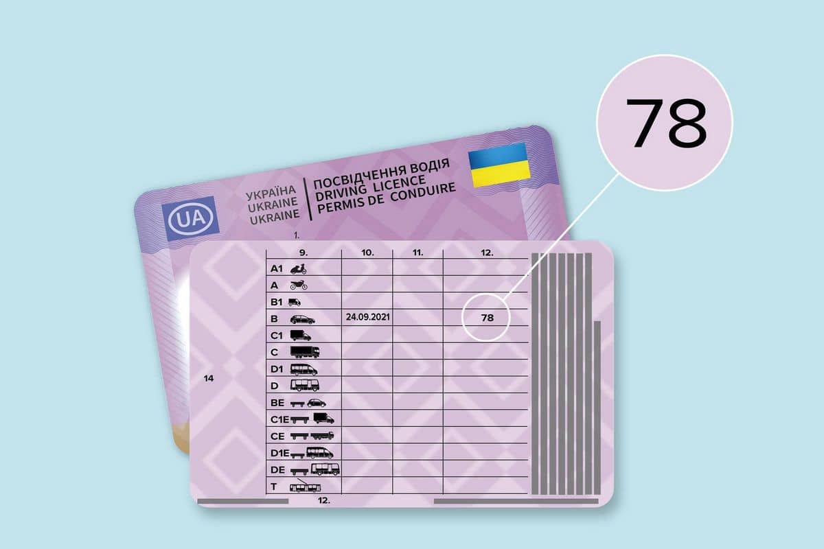 Згідно з постановою Кабінету Міністрів України №1007, в Україні діє європейський стандарт маркування «прав». Якщо кандидат у водії складав практичний іспит на автомобілі з автоматичною коробкою передач, у його посвідченні у графі 12 проставляється цифровий код «78».