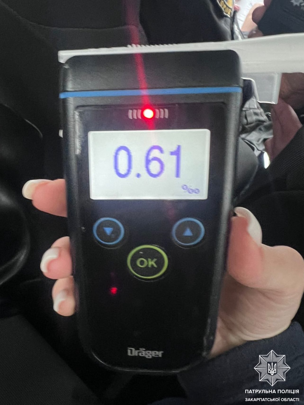 ВІДЕО ДНЯКоли інспектори спілкувались із жінкою, то помітили ознаки алкогольного сп’яніння. Огляд провели на місці зупинки, результат — позитивний. Драгер показав 0,61%.