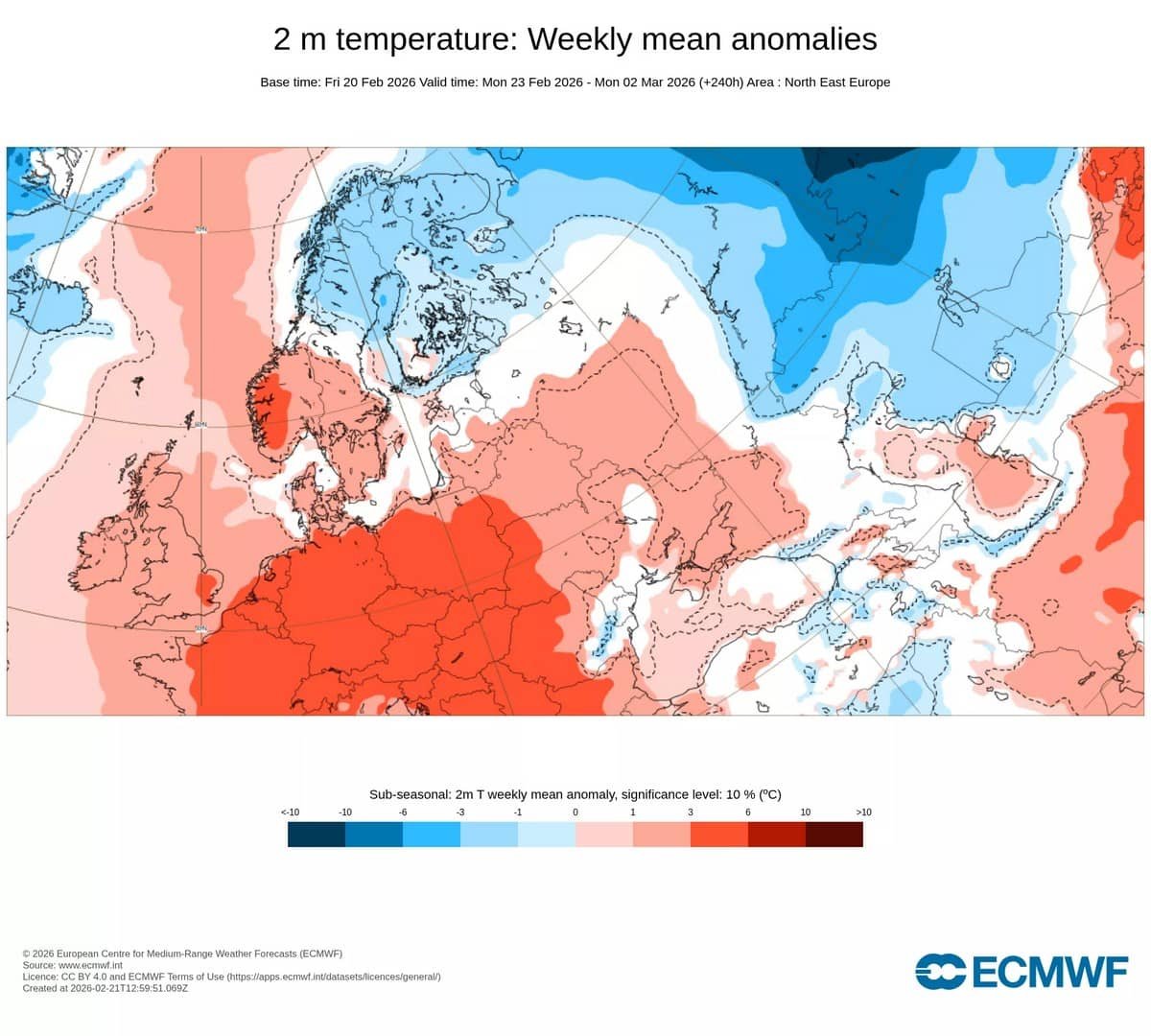 РекламаСвіжі дані ECMWF (Європейського центру середньострокових прогнозів погоди – ред.) показують, що до 28 лютого у центральній та східній Європі вдень фіксуватимуть температуру повітря в межах +10 °C. Подекуди очікують навіть тепліше. На карті добре видно, що це тепло торкнеться і західних областей України.