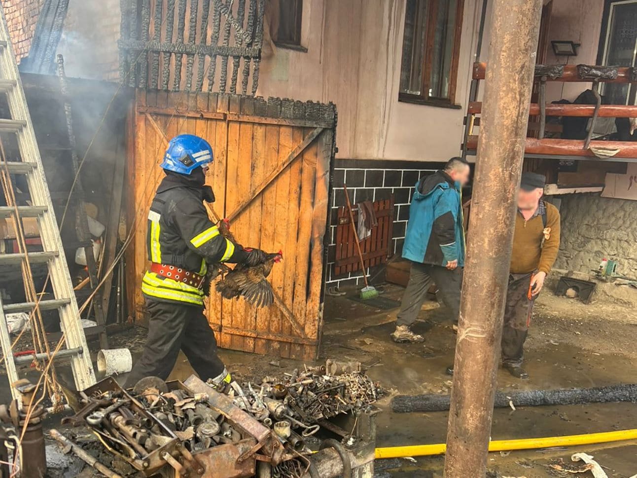 Пожежники оперативно прибули на місці події. Використовуючи апарати захисту органів дихання та зору, вони винесли з прибудови свиню і 8 курей. Головні ж зусилля спрямували на захист будинку, де мешкають матір і семимісячна дитина.